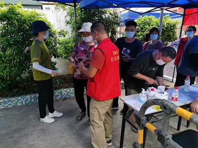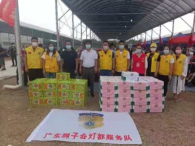 ▲古镇镇总工会、广东狮子会灯都服务队、中山市个体劳动者私营企业协会、女企业家协会、中山光正实验学校、古镇镇农业银行等为海洲绿博园核酸检测采样点捐赠6批物资