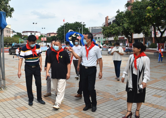 最后,慰问团一行来到学校操场,在“红领巾”宣讲团的指引下,参观学校党史宣传栏。领导们饶有兴趣地聆听小小党史宣讲员有板有眼地讲述党史故事。时值中国共产党成立100周年,大家对五小成立包括学生在内的“党史百人宣讲团”表示赞许,对学校营造的浓厚爱国氛围表示欣喜。