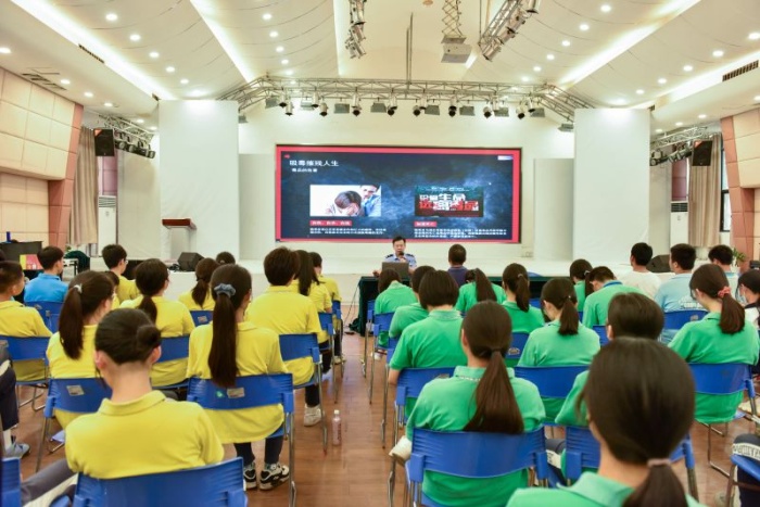 6月16日,中山市沙溪理工学校联合中山市沙溪镇公安分局、中山市香山社会工作服务中心,在学校综艺厅开展“珍爱生命,远离毒品”6.26国际禁毒日宣教活动。活动由沙溪镇隆都派出所副所长叶雍赟警官主讲,学校副校长叶树人、政教处主任廖维光、校团委书记黄健英,以及200多位师生参加活动。