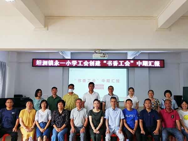 2021年6月4日下午,坦洲镇永一小学多媒体室内,举行了坦洲镇“书香特色工会”的中期汇报分享会。坦洲镇教育工会主席杨建萍、坦洲镇部分学校工会主席、坦洲镇永一小学邓文忠校长、黄桦主任出席了分享会。